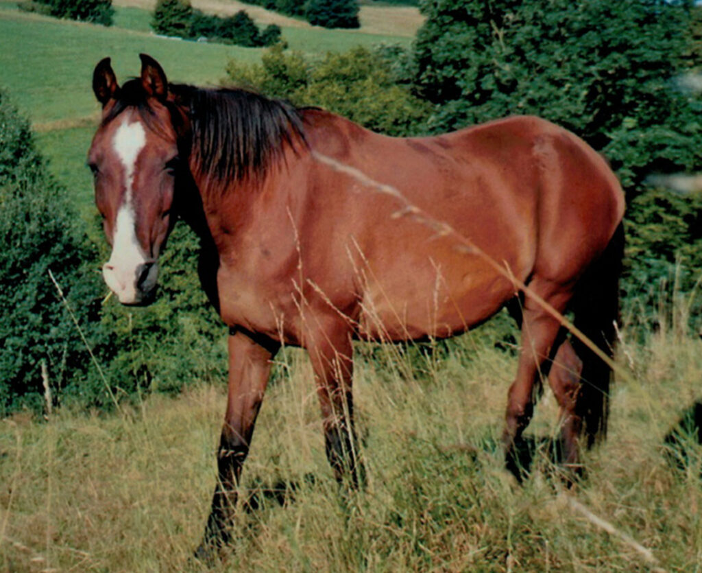 Nahat, geb. 1.2.1995 v. Jeremias a.d. Nizola v. Zoltan. Auf der Weide im neuen Zuhause, im Gestüt Alia v. Maike u. Werner Trendl