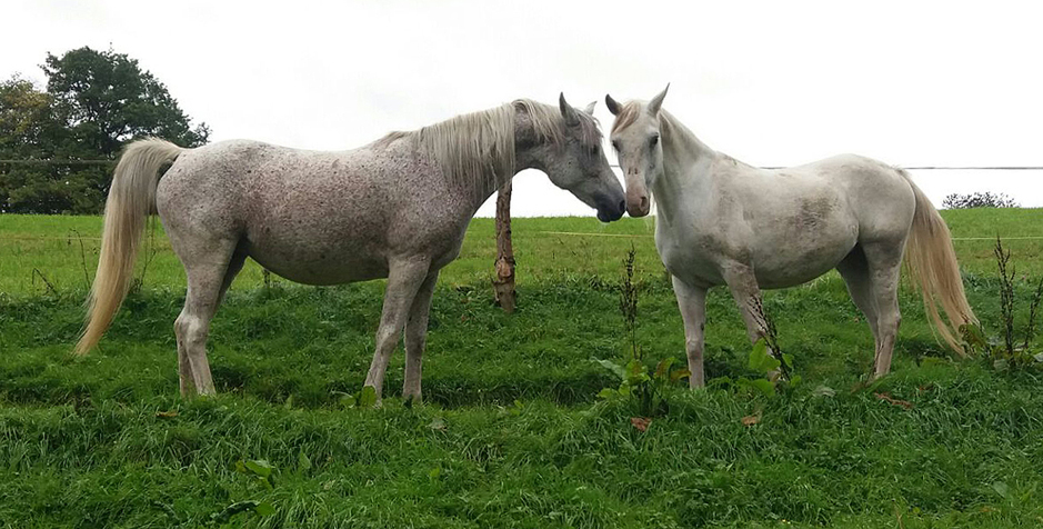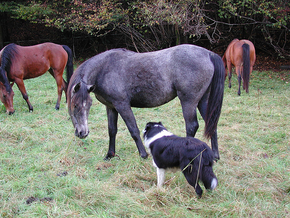 Jungstuten auf der Weide in Gummersbach. Mit Hundefreund Tristan.