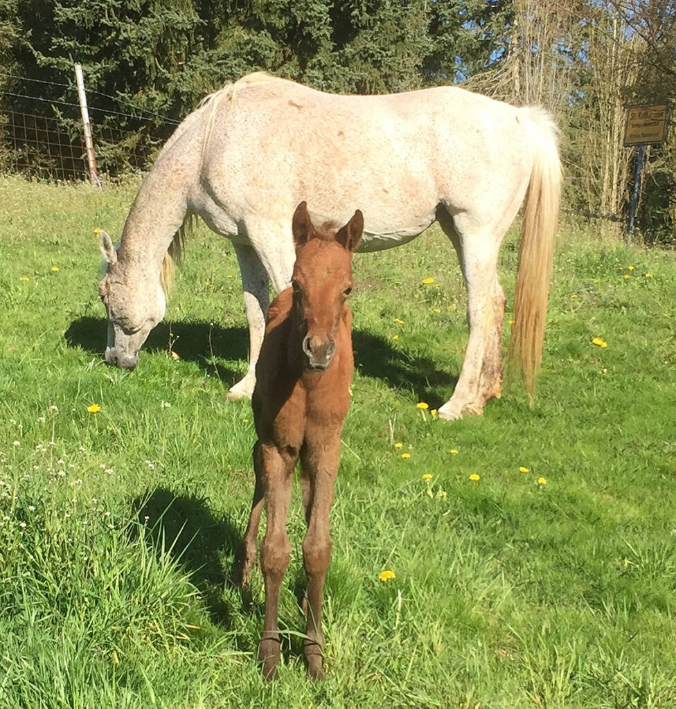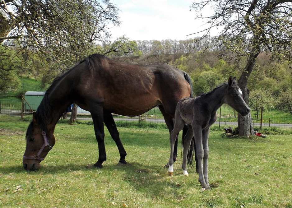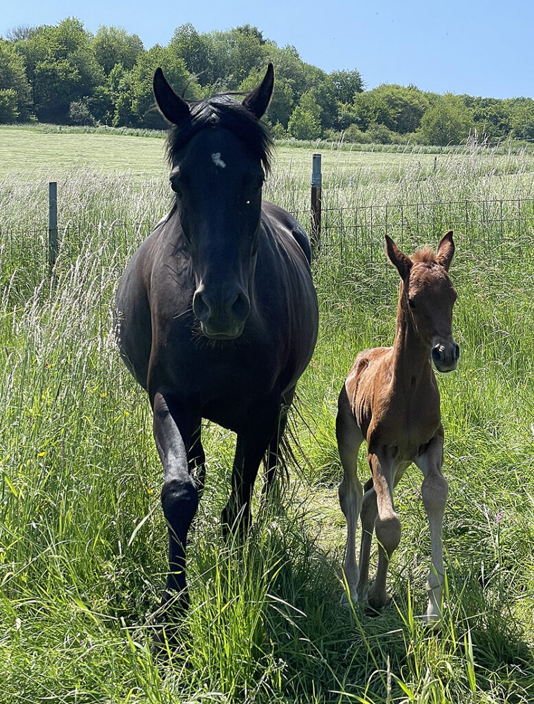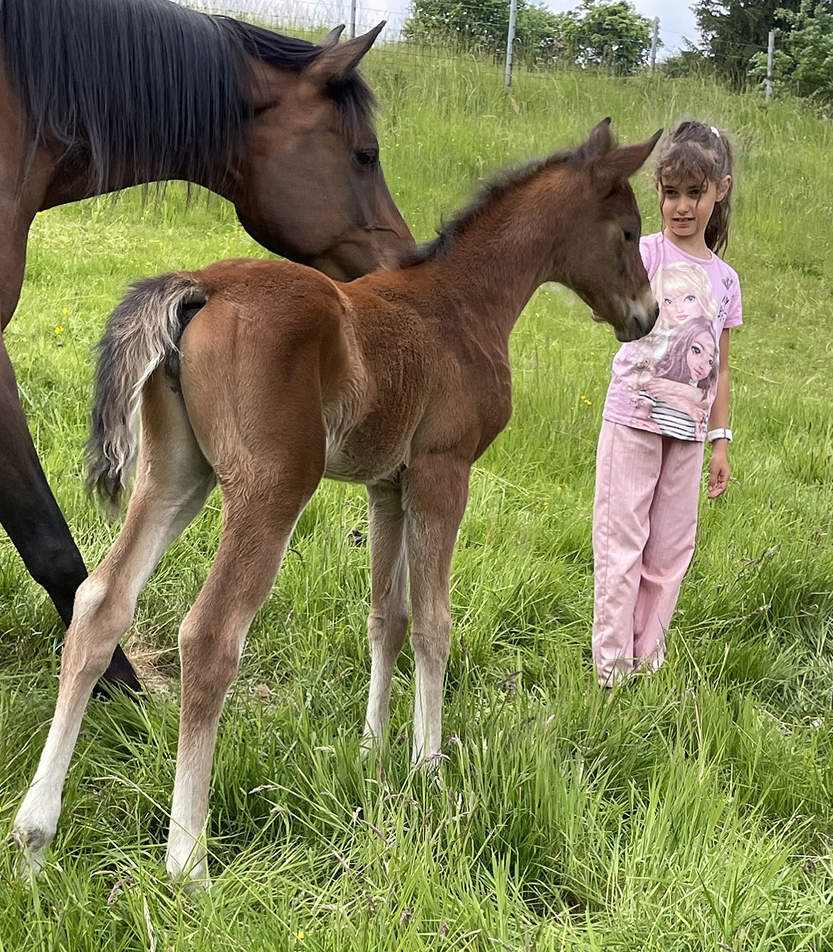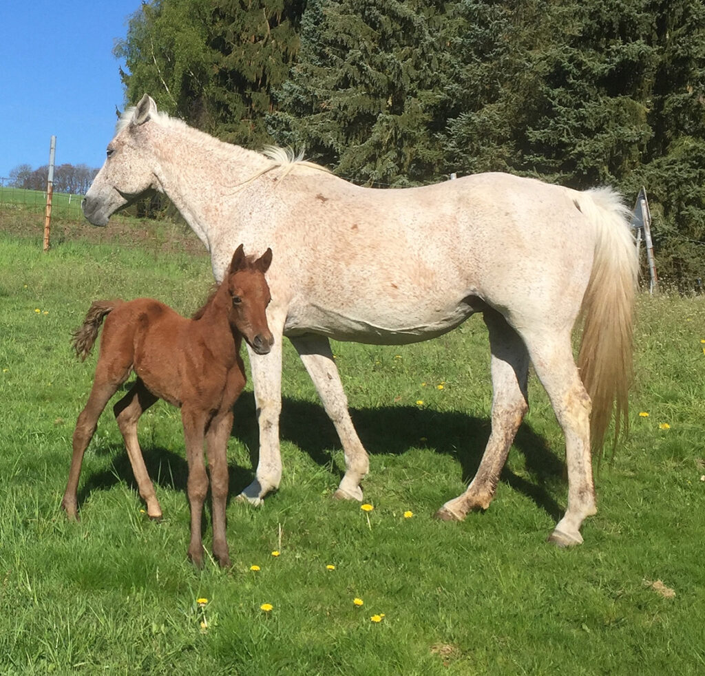 Ein Enkelkind mit Halana und Stutfohlen Helena, geb. 13.5.2025 v. Apollon Gazlan WM