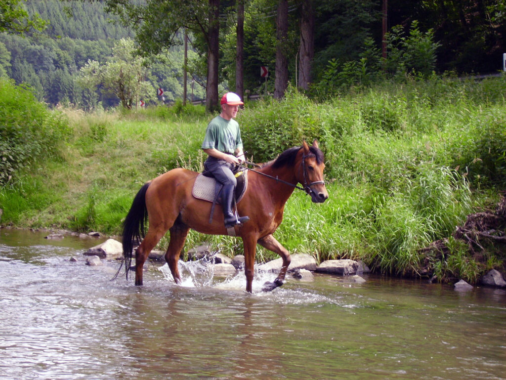 Der Begleiter auf dem ersten Ausritt mit Nahat ist Werner Trendel auf Aeolos v. Shogun III a.d. Alia.