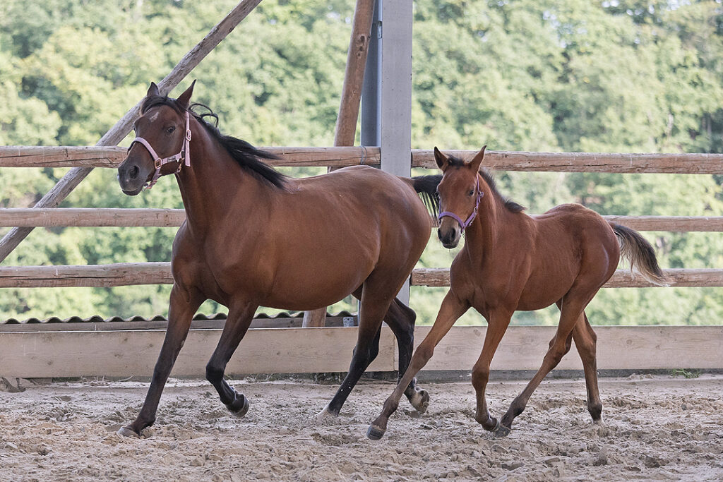 Olivia WM, v. Aetos, mit Stutfohlen Ochna WM, geb. 31.5.2019 v. Nahat.