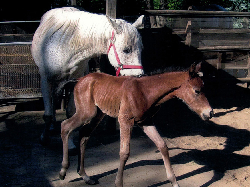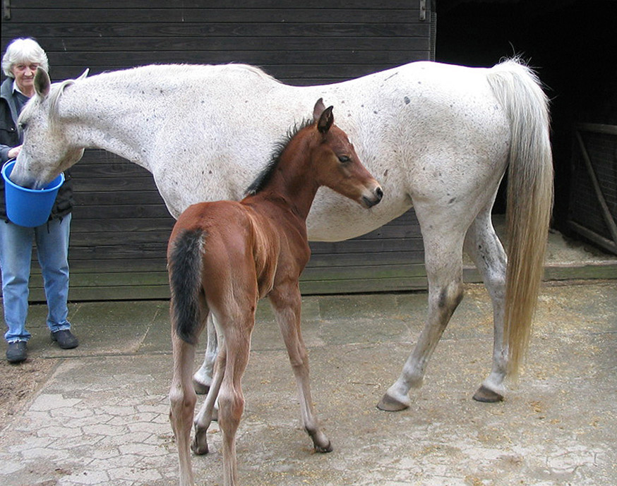Szellö mit dem wenige Stunden alten Hengstfohlen Gazlan Khan geb. am 2. Mai v. Kublai Kahn.