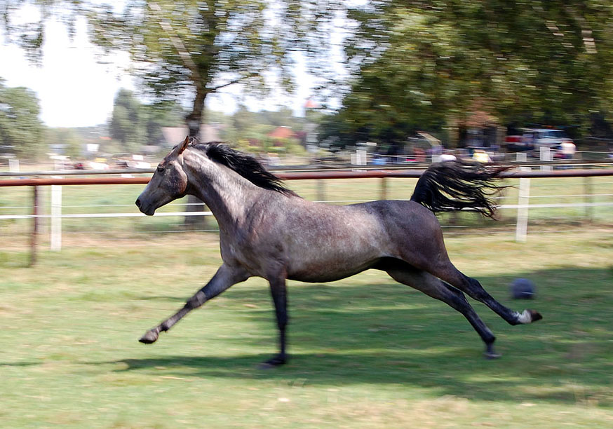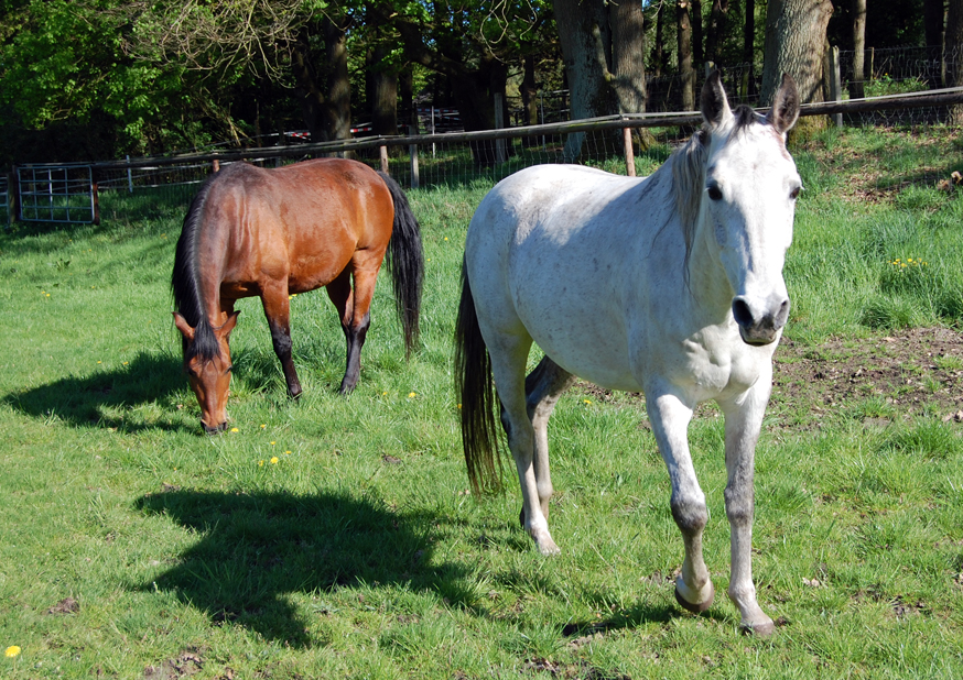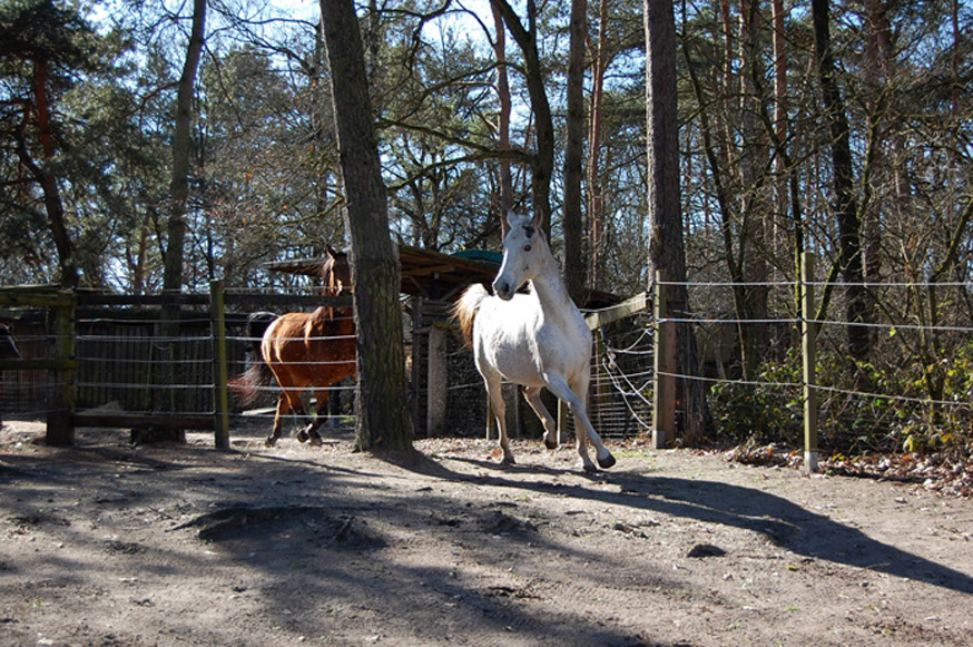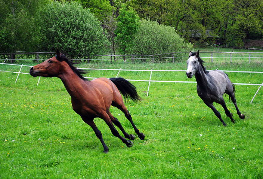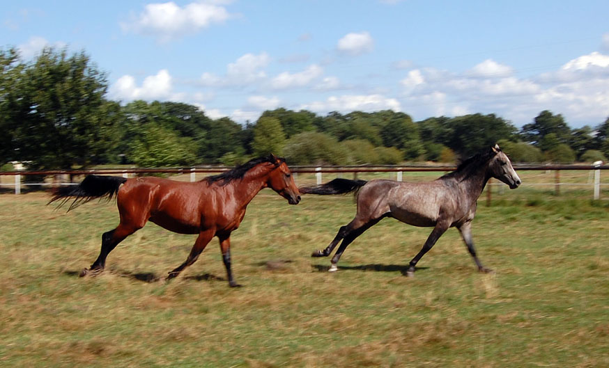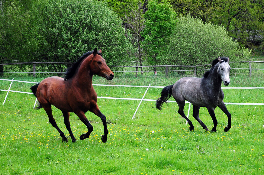 Im nächsten Frühjahr sind die Beiden dann schon zwei Jahre alt. Wie bei allen jungen Tieren wissen auch die Hengstfohlen mit ihrer Kraft nicht wohin. Das Tor zur Weide konnte gar nicht schnell genug aufgehen. Erst einmal war ein ausführlicher Galopp fällig.