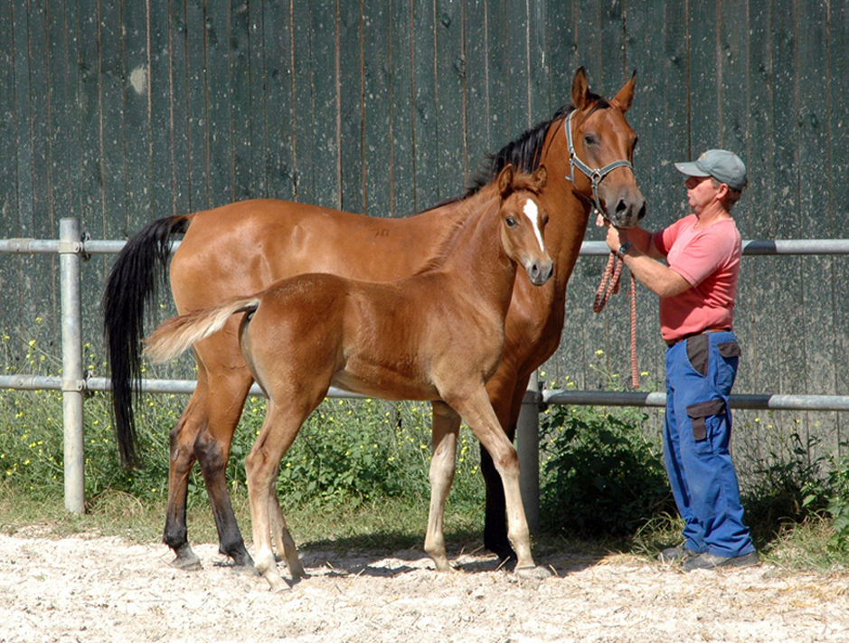 Silva/Siglavy Bagdady XVII-1, geb. 2.3.2003 v. Siglavy Badady XVII a.d. Dahoman XXXIX-24 mit Hengstfohlen v. Muzulman (Mersuch XIX-68)