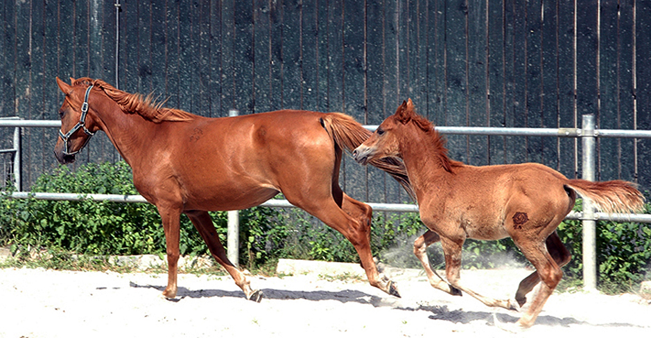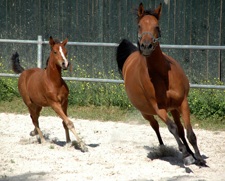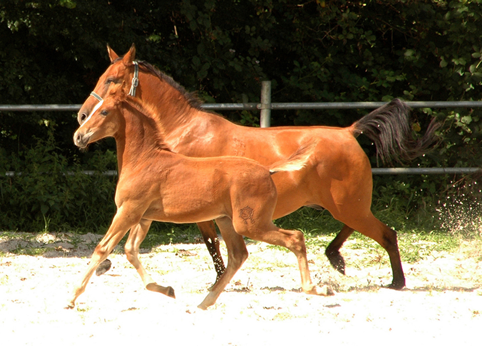 Koheilan Karima, geb. 11.5.2010 v. 5091 Koheilan Karsaly a.d. Hadban XXVII-49 (Hédi) mit Hengstfohlen v. Reineke Z