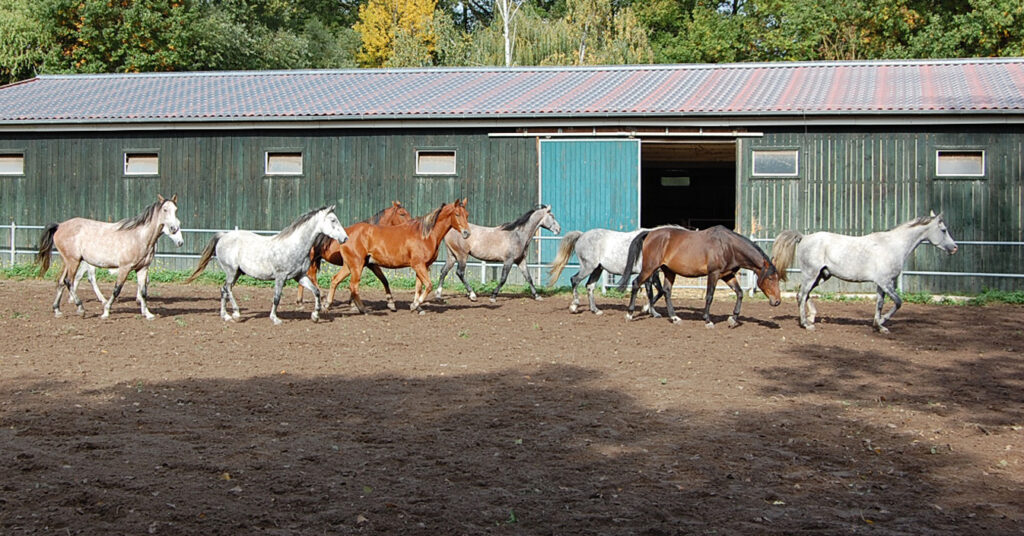 Stuten und Fohlen zogen 2009 von Hornhausen nach Beuster in die Altmark um. Hier waren genug Stallungen und vor allem ganz viel Weidefläche vorhanden. Die Zucht der Shagya Araber konnte jetzt erweitert werden.