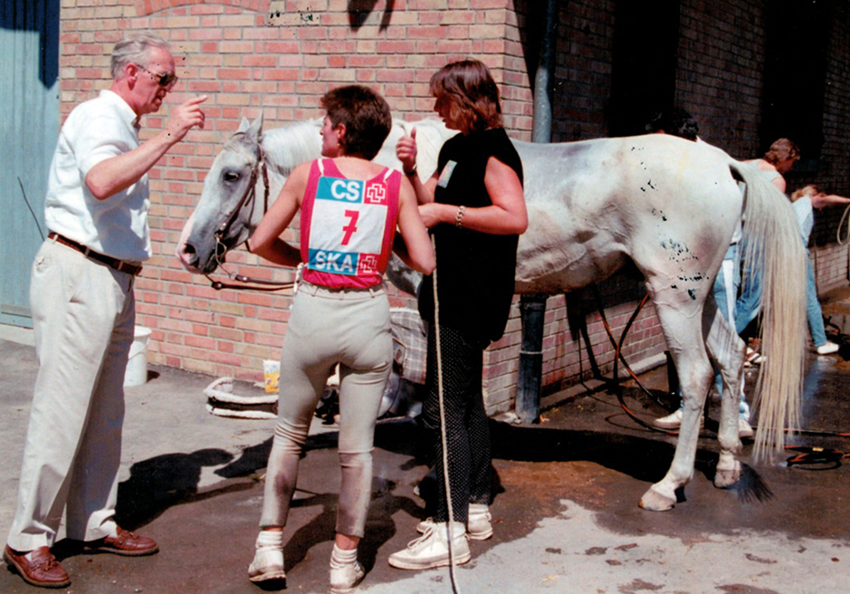 Reserve-Sieger Dhalim v. Ibn Halima a.d. Dana, Reiter Susy Wyss. Wird nach 80 Km von der Reiterin und ihrem Team vorsorgt.
