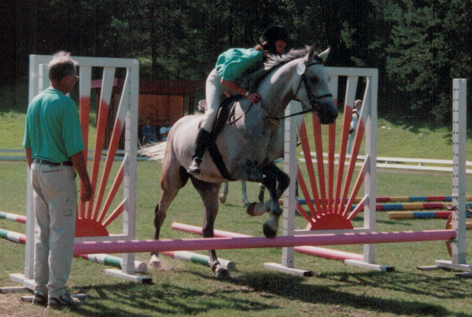 Ausbildung nach der Chiron-Methode, springen mit durchhängenden Zügeln.